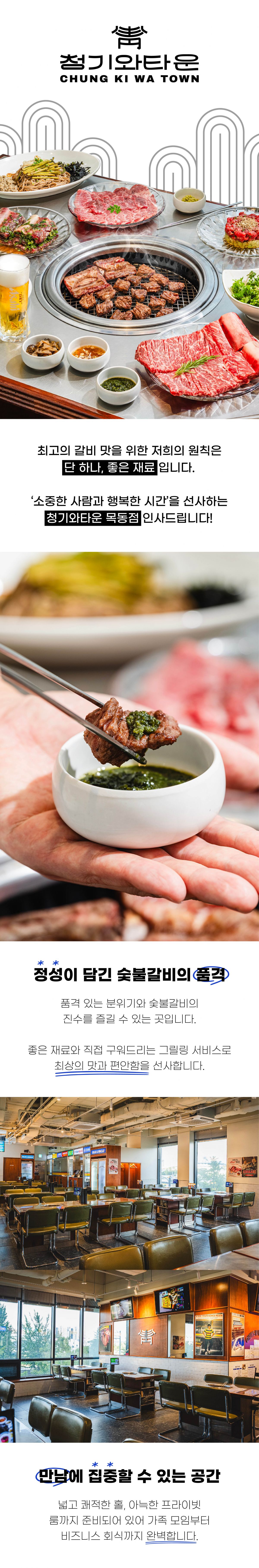 청기와타운 목동점은 숯불 위에서 꽃피우는 최고의 갈비 맛과